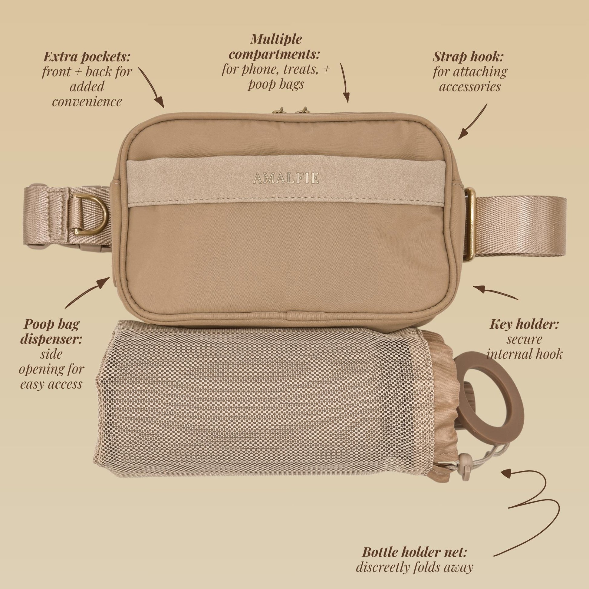 The ultimate hands-free dog walking set, designed to keep you organised, hydrated and ready for every walk. This coastal beige hydration set includes our signature crossbody dog walking bag and a 24oz water bottle in mocha brown.