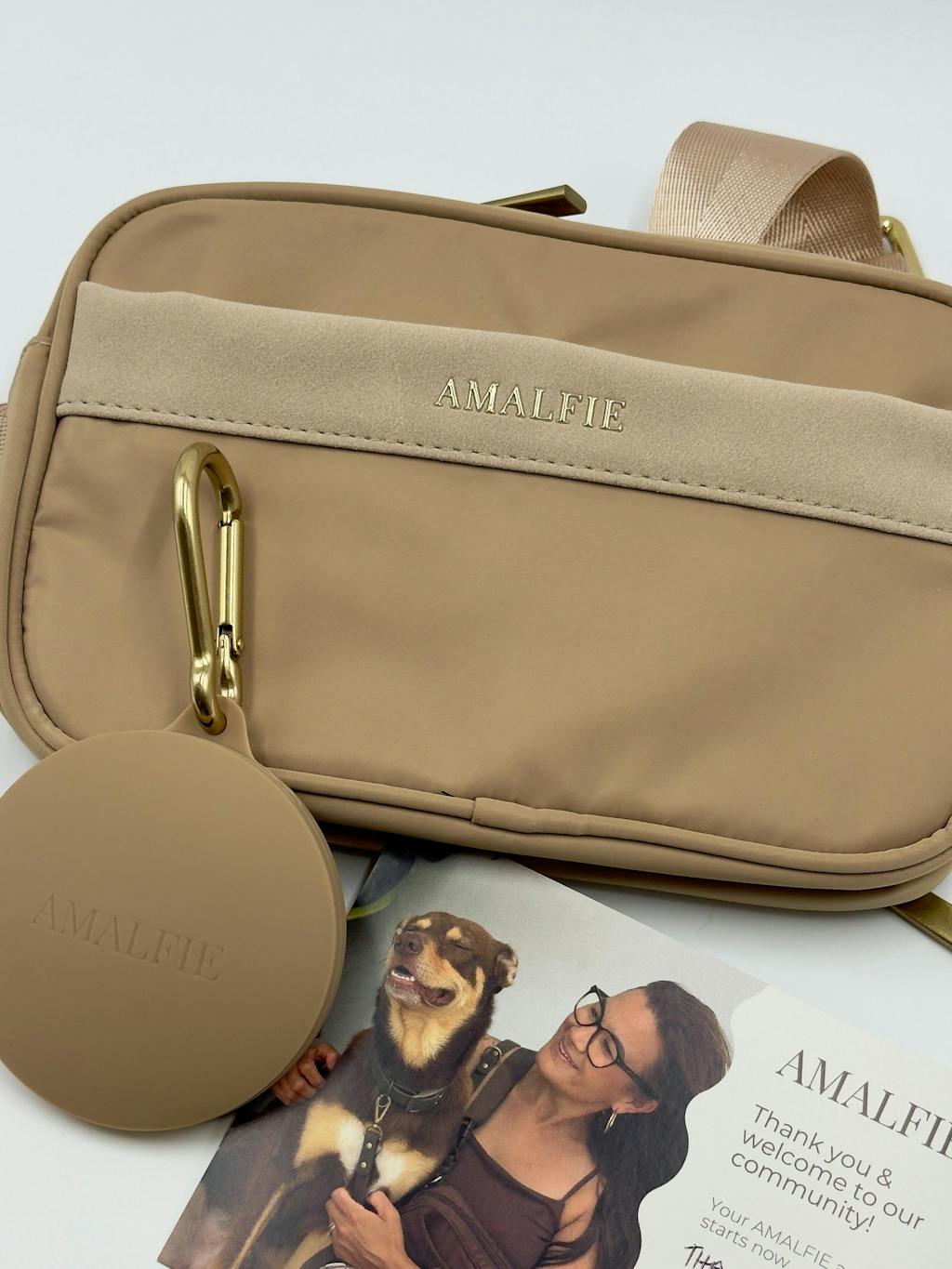 Meet your new favourite dog walking set, a chic coastal beige walking bag paired with our matching silicone treat pouch for stress-free, hands-free walks.